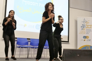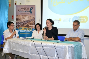 | | עוד תחנה של המסע נערכה במודיעין, שם שאלו את השאלה - איך נפתור את הסכסוך? בפאנל עם נציגות/י מפלגות שוחחה העיתונאית וחברת התנועה פאר לי שחר עם נציגי מרצ, העבודה, ויש עתיד (המפלגות היחידות שנענו להזמנה). בין הנושאים: חזון המפלגות לסיום הסכסוך וחתירה להסכם מדיני, וההכרח בחיזוק ההשתתפות של נשים בפוליטיקה, במוקדי קבלת החלטות וסביב שולחן המו״מ. הסכסוך ייפתר "כשיהיה צוות משא ומתן שיהיה בנוי חצי- חצי גברים ונשים, ותהיה בו נציגות ערבית ישראלית" כך אמר בפאנל ח״כ מוסי רז. ובחלק האומנותי: לאה שבת בהופעה מרגשת הזכירה שיש לנו כוח גדול ורוח גבית להמשיך ולפעול. חברות אנסאמבל כאן ועכשיו كان والان המוכשרות המחישו בדרכן הייחודית איך קשרים נרקמים, גשרים נוצרים וסכסוכים נפתרים. להקלטת האירוע ממודיעין | | | | 19.9 ירושלים - מדברות סובלנות ותקווה לשנה החדשה القدس – نتحدث بالتسامح والأمل في السنة الجديدة | | התחנה הבאה במסע עצרה בירושלים. ביום שני בערב התאספו במרכז פלם כמה עשרות נשים עושות שלום מירושלים והסביבה. דיברנו על השותפות שנבנתה השנה עם תנועת האחות הפלסטינית שלנו, נשות השמש, ועל ההתפתחויות הנוספות שחלו בשנה האחרונה. שמענו הרצאה מרתקת מפי חברת התנועה לילי הלפרין, המכהנת כראש מרכז אמת לסובלנות, על חוכמת האיפוק ועל קידום שיח של סובלנות, אהבה ותקווה על פי שיטת "מה הן האפשרויות", המעמיקה ומצמיחה קשרים בין אישיים וקבוצתיים. חשבנו יחד על היחסים של כל אחת עם סביבתה הקרובה ועל המעגלים ההולכים ומתרחבים מהאישי ועד המדיני. רשמים מהמפגש ועל השיטה כאן | | | | 21.9 ג'יסר א-זרקא: רק יחד נעשה פה שלום! جسر الزرقاء: فقط معًا نصنع السلام هنا!