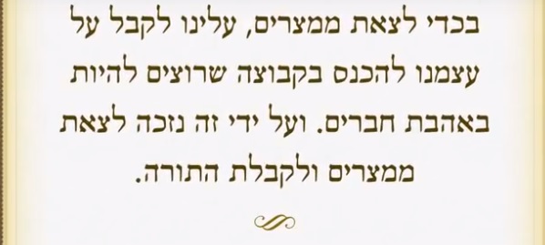 האדם צריך לדעת שהוא השפל בכולם. כדי לצאת ממצרים על האדם להיכנס לקבוצה שכולם רואים עצמם כשותפים למטרה. ואז מרגישים גם יותר אחריות.