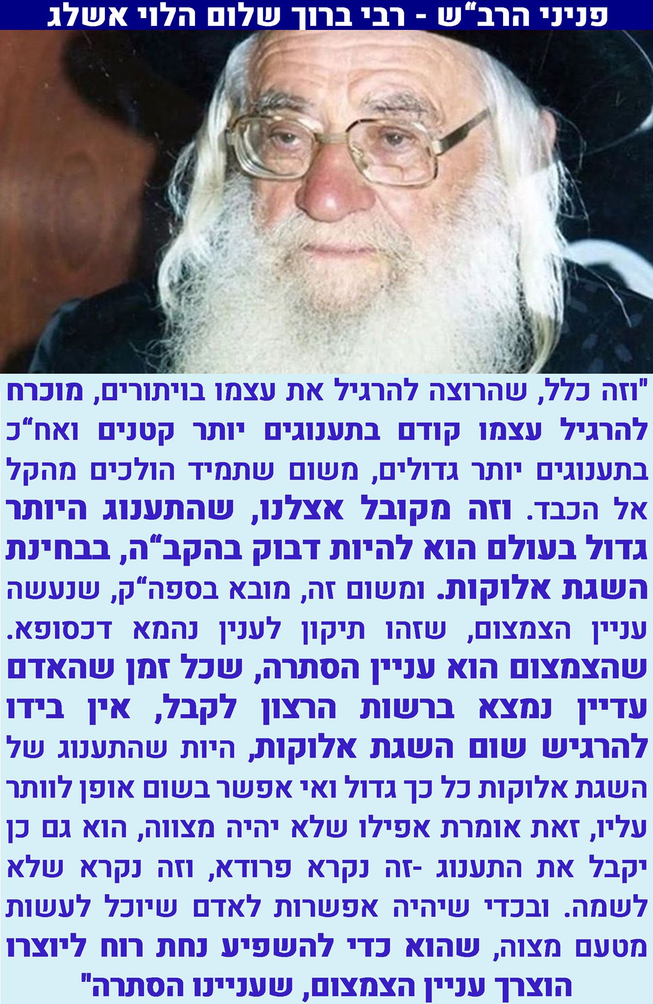 הרב"ש היה הולך עם יציבות כאילו העולם כולו הולך לצידו. היו ילדים שמשחקים וצועקים והוא בשלו כאילו דבר לא קורה לידו. כך עלינו ללכת בדרך ה'.