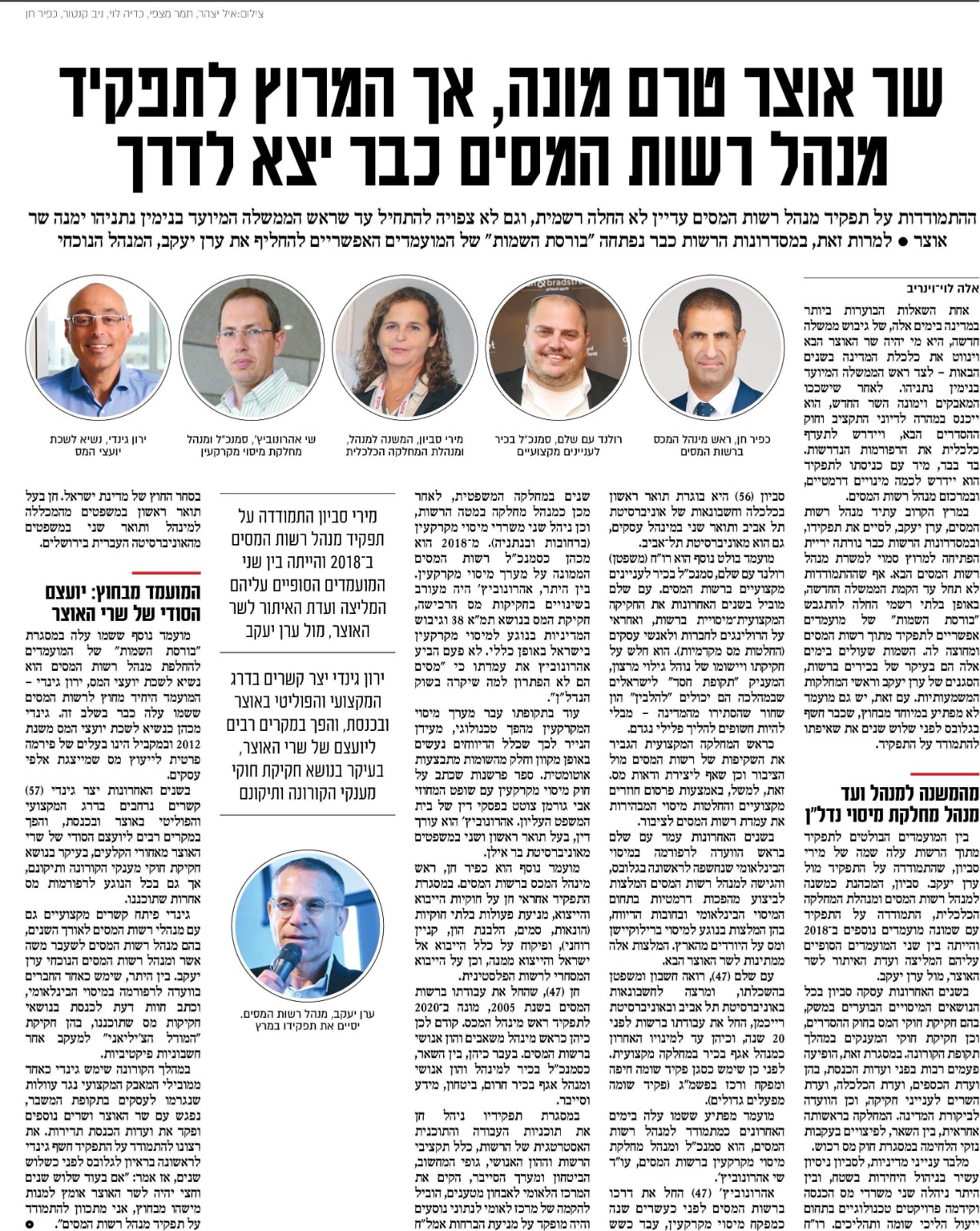 | גלובס מדווח על פתיחת המרוץ לתפקיד מנהל רשות המיסים ועל מועמדותו של יועץ המס ירון גינדי, נשיא הלשכה, למשרת מנהל הרשות. כרקע למועמדותו ציין גלובס בכתבה את המעמד המקצועי של גינדי ושל לשכת יועצי המס, בקרב הדרגים המקצועיים והפוליטיים באוצר, בכנסת ובממשלה: