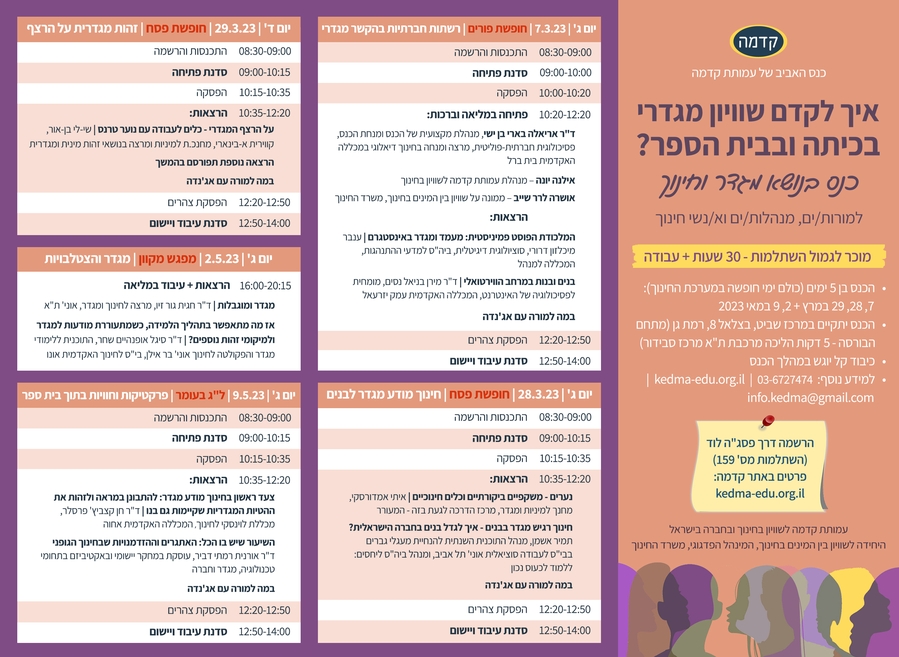• ויש גם תזכורת להזדמנויות פתוחות להרשמה - לכנס מגדר שלנו וזום לתלמידים/ות. פרטים למטה.