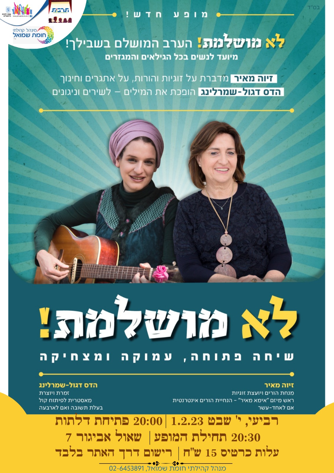 | נשים יקרות, מזמנות לערב של שיחה פתוחה, עמוקה ומצחיקה! ב1/2/23, הירשמו בקישור הבא- https://bit.ly/3kbdXOf |