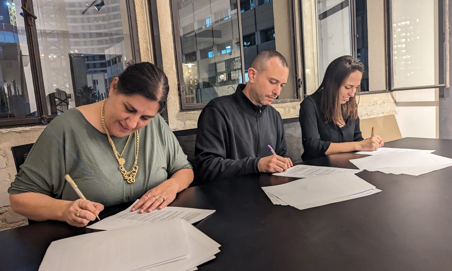 לצורך החתימה נפגשנו ערב חגיגי אחד במשרד החדש שלנו בתל אביב, וגם בני ובנות הזוג שלנו הגיעו וחתמו על פסקה קטנה אך חשובה: