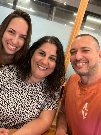 שלושת השותפים בחברה: סתיו מורן לשם, אמיר גבירץ ואני.