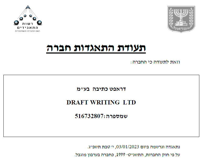 ב-3 בינואר 2023 התאגדה ברשם החברות חברה חדשה, הידועה בכינויה: דראפט.