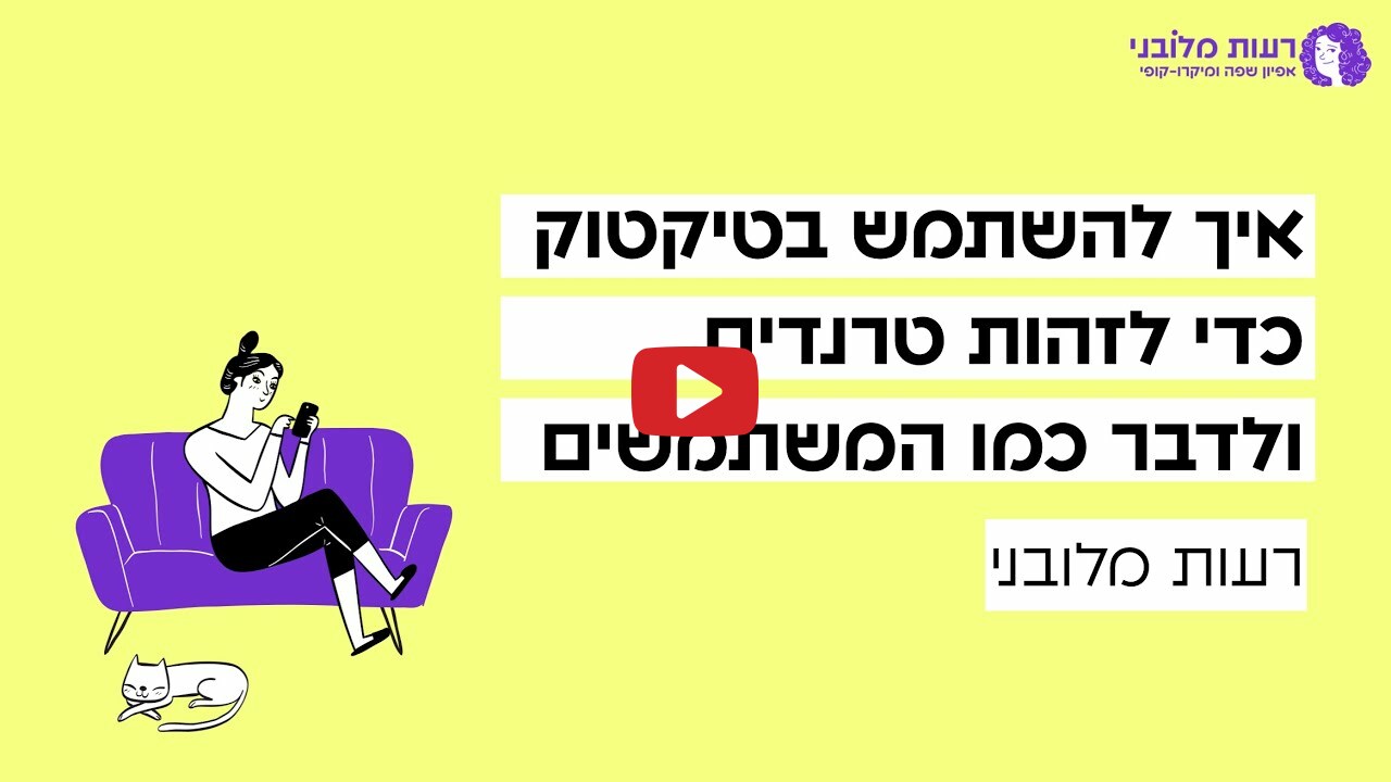 במיטאפ שלנו סקרה רעות את ההתפתחות של טיקטוק ואת הנתונים היום, ואז הראתה - עם דוגמאות, סרטונים וסאונד - איך אפשר להשתמש בשפע התוכן הזה כדי ללמוד על המשתמשים וכדי לשלב את השפה שלהם בכתיבה שלנו.