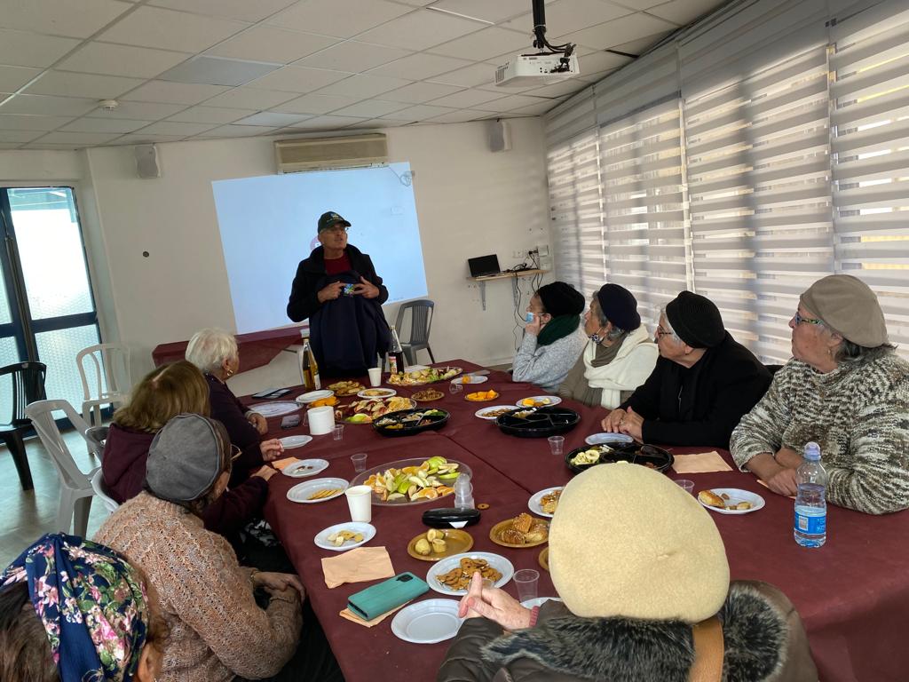 | לכבוד ט''ו בשבט התקיימה סדנה לעולות מצרפת, בה הן נהנו מפרות יבשים והרצאה של מדריך מקק''ל. |