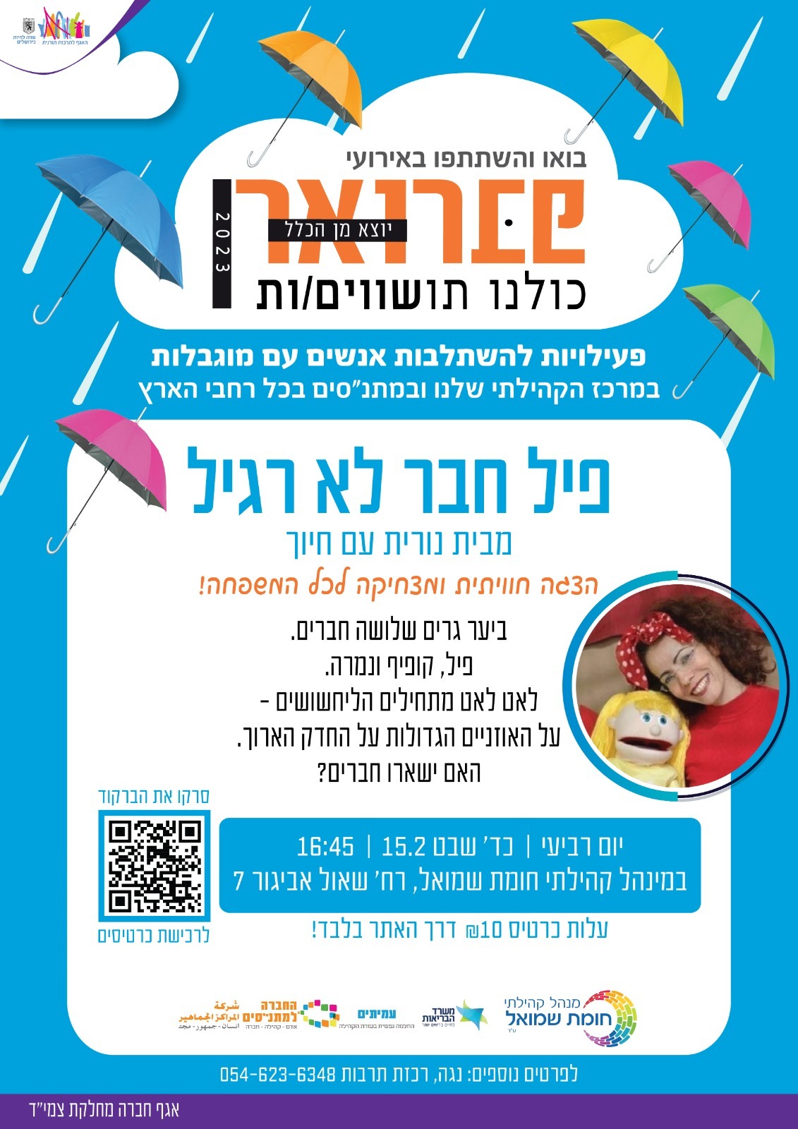 | פברואר יוצא מן הכלל הוא מיזם ארצי של החברה הארצית למתנ"סים לקידום המודעות לעולמם של אנשים עם מוגבלויות ושילובם בקהילה. השנה בחרנו לשים זרקור על העלאת מודעות אצל הילדים שלנו בהצגה לכל המשפחה בה נצחק יחד ונלמד על קבלת השונה ועל חברות. בנוסף, הורי צמי"ד מוזמנים לפורום ומיד אח"כ להרצאה בנושא "אחאות מיוחדת" קהילה נוספת בה התמקדנו השנה היא מתמודדי נפש, אנו מזמינים אתכם לשיח מרתק, מלב אל לב של הרב יוני יוני רוזנצווייג וטליה מור שיעסוק במפגש בין הסיפור האישי לבין עולם ההלכה. מחכים לראותכם. |