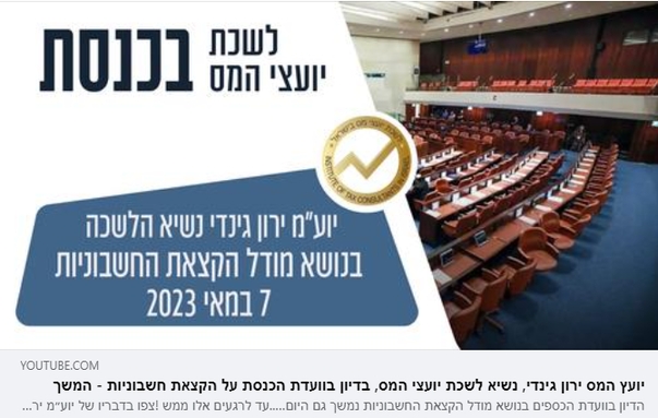 דיון בוועדת הכספים בנושא מודל הקצאת החשבוניות נמשך גם היום …עד לרגעים אלו ממש!