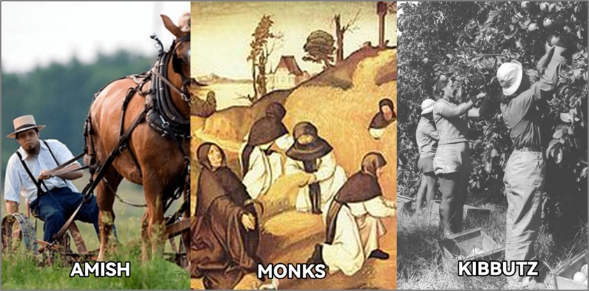 Looking into existing alternatives, we find three groups of farmers who became prosperous though they began life in poverty. Furthermore, in their inception, they had no access to “advanced technologies,” and two groups oppose "advanced technologies" to this day. I refer by this to: * Monks - Europe, from the early Middle Ages. * Amish - America, from the 17th century. * Kibbutz - Asia/Israel, from the early 20th century. Though they had rough beginnings, those groups quickly practiced thriving agriculture with high expertise.