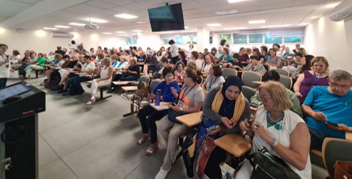 רים, אשה מרשימה וחדורת רוח עשייה, סיפרה לקהל איך הצליחו, למרות המציאות המדממת, להקים תנועת נשים פלסטיניות שוחרות שלום. הקהל הקשיב מרותק לסיפורה מעורר ההשראה.