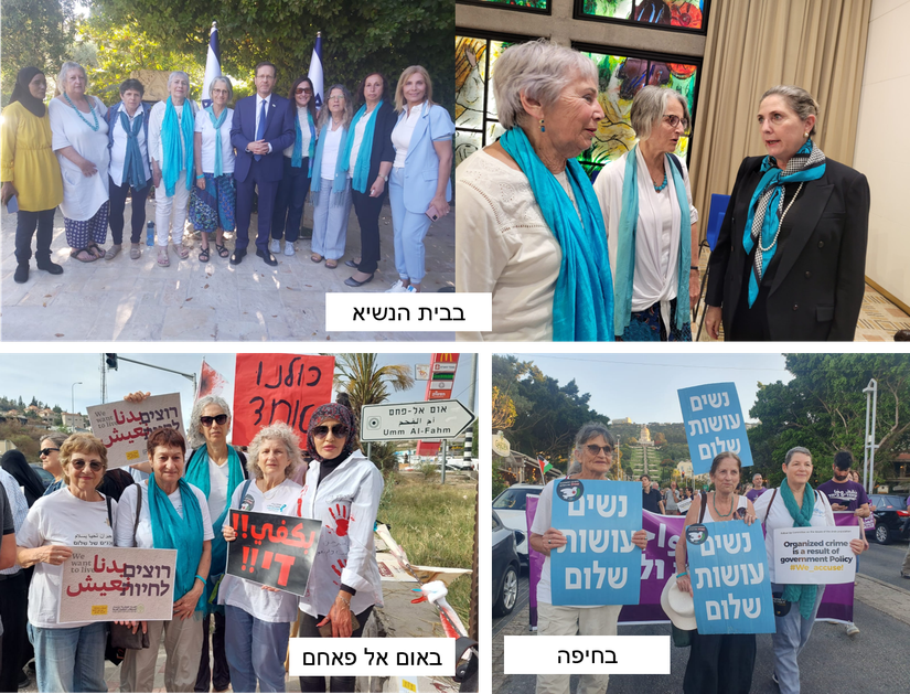 האלימות בחברה הערבית הולכת וגואה. אזרחיות ואזרחים מהמגזר הערבי ויוצאים להפגנות ולפעולות מחאה. נציגות תנועת נשים עושות שלום, הפועלת רבות להשגת שיוויון הלכה למעשה, הצטרפו החודש לחברות הערביות, בבבית הנשיא בירושלים, בחיפה ובאום אל פאחם.