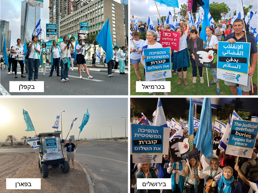 ולא רק בקפלן, נשים עושות שלום מפגינות בכרמיאל, בכפר סבא, בבאר שבע, בירושלים, בפראן, בכרכור, במודיעין ועוד. אפשר לראות אותנו במחאות בכל רחבי הארץ, בולטות בקהל המפגינים עם היונה המדממת, המדבקות, הגלויות ו…ההזמנה לחתום על קריאת האימהות.