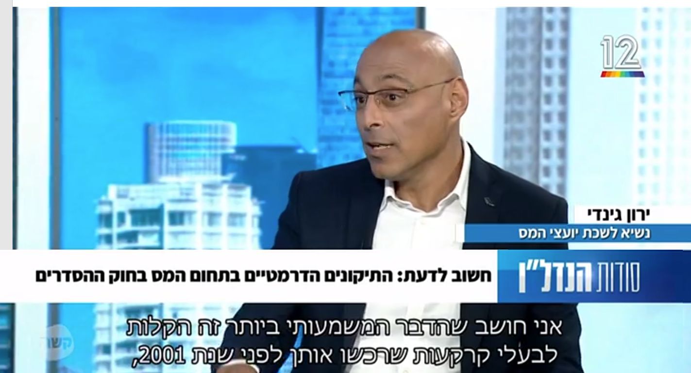 יועץ המס ירון גינדי, נשיא לשכת יועצי המס, בראיון לערוץ 12, בתוכנית "סודות הנדל״ן", על השינויים האחרונים וההטבות במיסוי מקרקעין, שחשוב שהציבור יידע: https://youtu.be/WrzI6mpvWRk