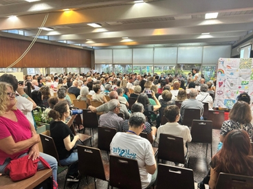 | לקראת האירוע באוקטובר אנחנו מקיימות סדרת מפגשי היכרות ובניית תקווה עם מנהיגת השלום רים חג׳אג׳רה מדהיישה, מנהיגת תנועת הנשים הפלסטינית נשות השמש, תנועת האחות של נשים עושות שלום. בראשית החודש קיימנו בקיבוץ נען, בשפלה, את המפגש הרביעי בסדרה זו. חדר האוכל של הקיבוץ היה מלא מפה לפה. הנה כמה התרשמויות: - "היה ערב יוצא דופן של אחווה מרגשת, מעוררת תקווה, במציאות מדממת של שני עמים הכל-כך קרובים באופיים וברצונם לחיות האחד לצד השני" - "אירוע מרגש ועוצמתי, מפגש לא-נשכח עם לוחמת השלום המדהימה מדהיישה". בספטמבר יתקיימו שני מפגשים נוספים, בקיבוץ כברי ב 6.9.23 ובקבוץ בית קמה ב-20.9. |
