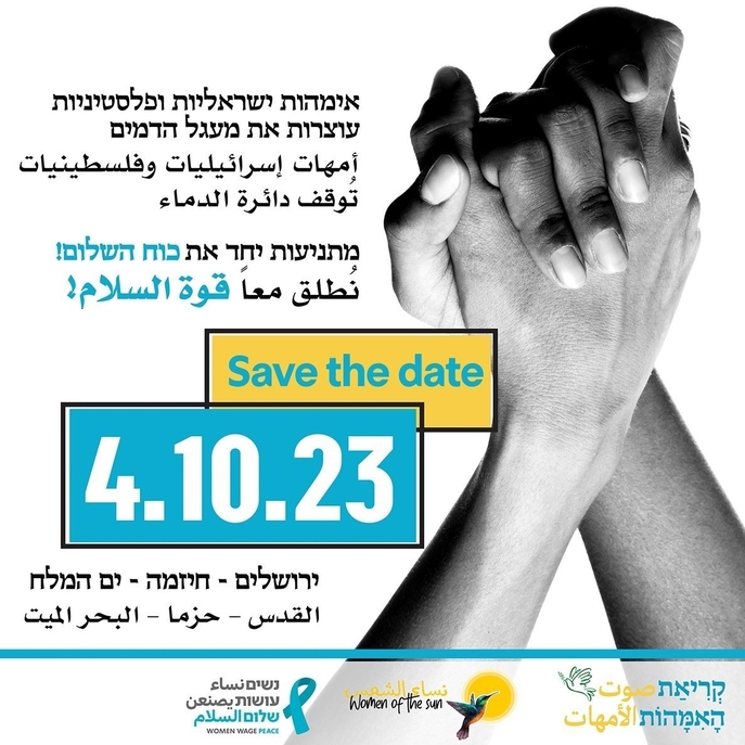| אנחנו רואות את הטרור המשתולל ברחובות, את האלימות ואת הנפגעים הרבים משני הצדדים, ואנחנו כאן כדי להגיד די! דווקא בימים שבהם הגזענות, האלימות והקיצוניות שולטות בשיח, והממשלה הורסת את הסיכוי לשלום - אנחנו, אימהות ישראליות מתנועת נשים עושות שלום ופלסטיניות מתנועת נשות השמש, מאסנו בחיים על החרב והחלטנו להתניע יחד את כוח השלום! אי אפשר להמשיך לשבת על הגדר ולספור את המתים, הפצועים ונפגעי הנפש. הצטרפו אלינו לכוח השלום בשאיפה משותפת לשלום, חירות, שוויון, זכויות וביטחון למען ילדינו! מוזמנות ומוזמנים להצטרף לקבוצת הווטסאפ השקטה של כוח השלום לקבלת עדכונים שוטפים על אירועי התנועה ועל אירוע השיא שיתקיים ב-4.10.23 בהשתתפות אלפי ישראליות ופלסטיניות. |