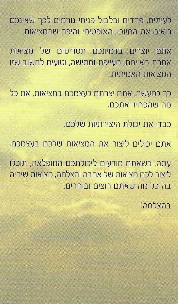 תוכלו ליצור לכם מציאות של אהבה והצלחה,