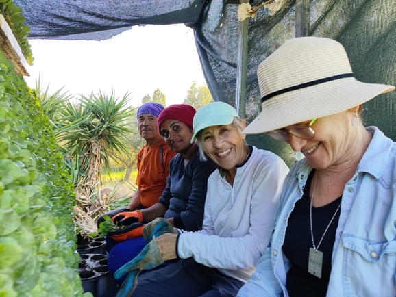 | Such values are frequently expressed in the readiness to volunteer to help someone in need (without monetary compensation), even when volunteering costs you time and money, and this someone is a competitor at regular times. Examples of volunteering and support that Yariv received and helped him survive the current Extreme Event in Israel: Members of his Moshav community who do not work in agriculture volunteered to work on his farm. The Moshav secretary (management) helped with matters related to it. Fellow farmers from other communities reached out and helped as much as needed. Dozens of volunteers (mostly not farmers) from around Israel have arrived and offered the much-needed help. As in the above picture, even volunteers from outside Israel came to help. EXTREME EVENTS ARE NOT RARE