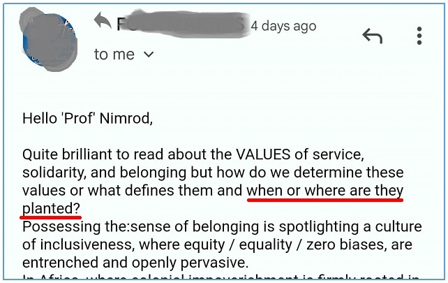 » VALUES MUST BE PRACTICED, or they are a waste of time.
