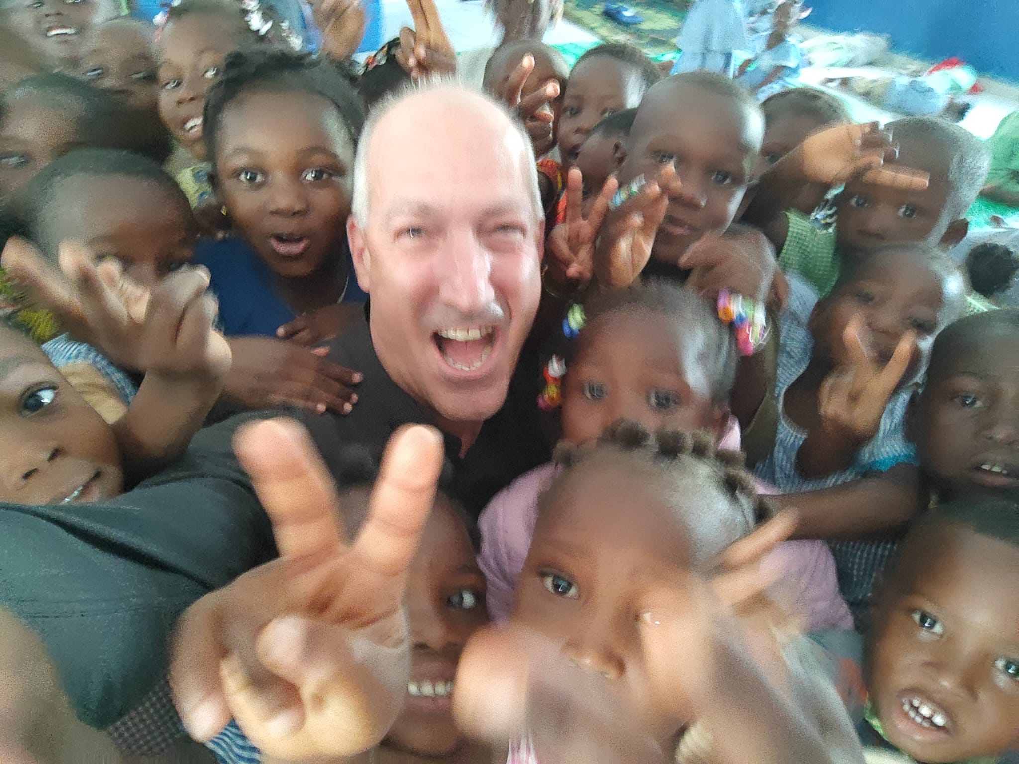 I reach the children, get on my knees, and we have a lovely wordless conversation in the language that all children know. We laugh a lot.