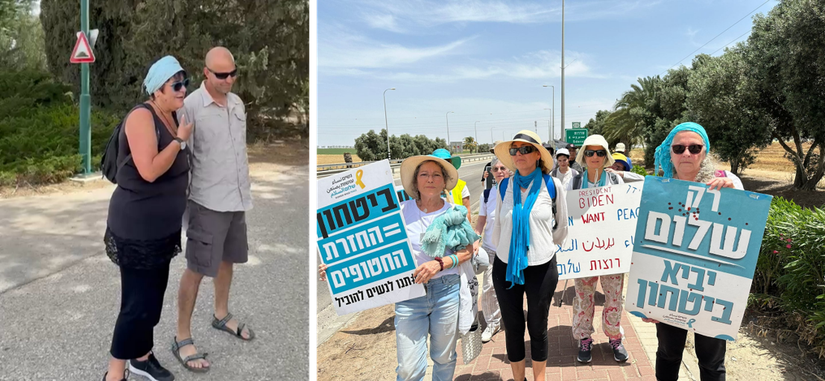 | ב-25.4 צעדנו בעוטף עזה, יחד עם ארגוני שלום נוספים - והפגנו למען החיים! למען שלום בטחון ותקווה! באותה שעה ובאותו מקום התקיימה הפגנה של מפגיני הימין הקיצוני, בקריאה להתיישבות יהודית בעזה. בצעדה שלנו קראנו לשחרור מיידי של החטופים ולהפסקת הלחימה; קראנו לא למלחמה אינסופית וכן לברית אזורית; לא להקצנה ולהסלמה וכן לחיים של תקווה. הכרזנו: עוד מלחמות ועוד ניסיונות להבעיר את השטח לא יועילו ולא ישיגו את הביטחון שכולנו ראויים לו. רק הסכם מדיני יביא ביטחון! לפני הצעדה נפגשנו עם חברתנו זילפה, מפונה מקיבוץ רעים, ועם רבש"ץ הקיבוץ, המציל הפרטי שלה, והם סיפרו על התופת שעברה עליהם ב 7.10. |