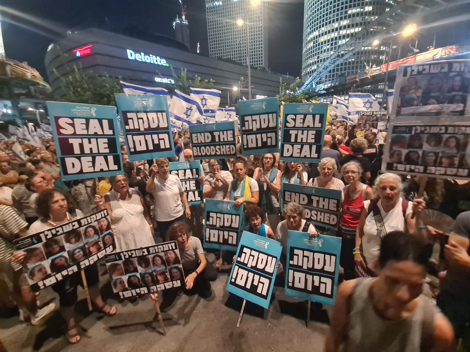 במהלך החודש כולו עמדנו יום יום מול שער בגין בתל אביב בקריאה: "עסקה עכשיו!" ; צעדנו עם המשפחות בתל אביב בצעדת התקווה - בדרישה להשיבם הביתה: "העתיד יתחיל עם שובם"; עמדנו איתן מול שגרירות ארצות הברית בקריאה: "SEAL THE DEAL"; ליווינו אותם בוועדות בכנסת, כמו גם במקומות שונים בארץ - בירושלים, בכפר סבא וקיסריה.