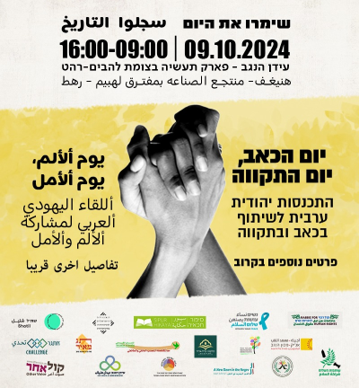 ב- 9.10.24 נתכנס בצומת להבים רהט למעגלי שיח של שותפות, הקשבה ולימוד, לכבד ולחבק את הכאב; להעמיק את התקווה. נגיע, יהודים וערבים מכל חלקי הארץ - בלב פתוח, עם רצון לשנות ואמונה שאפשר.