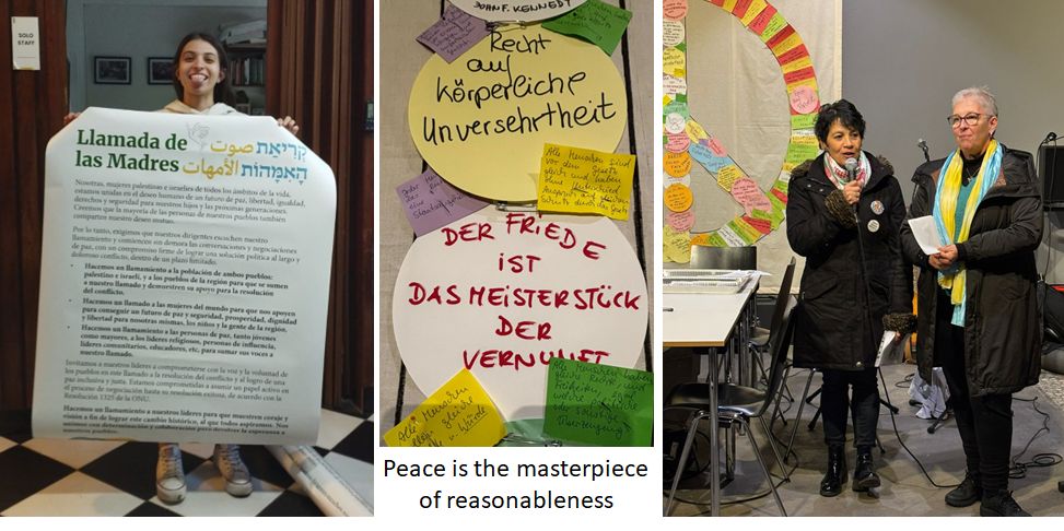 German-speaking countries: support groups are growing steadily in this region, spreading The Mothers' Call through different channels that include showing up at cultural events, organizing street activities, and broadening media and personal contacts. For instance, 750 people participated in a concert by folksingers/songwriters Yael Deckelbaum and Meera Eilabouni followed by a workshop led by WWP/WOS supporters about how to make our voices heard, as women.
