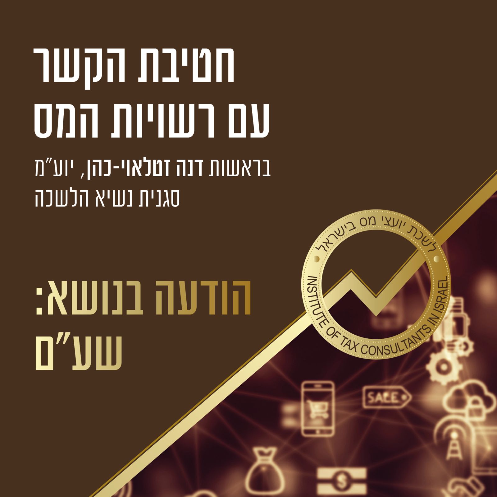 אנו מודים לצוות שע"ם על הקשבתם לצרכי המייצגים ועל שיתוף הפעולה המקצועי עם לשכת יועצי המס.