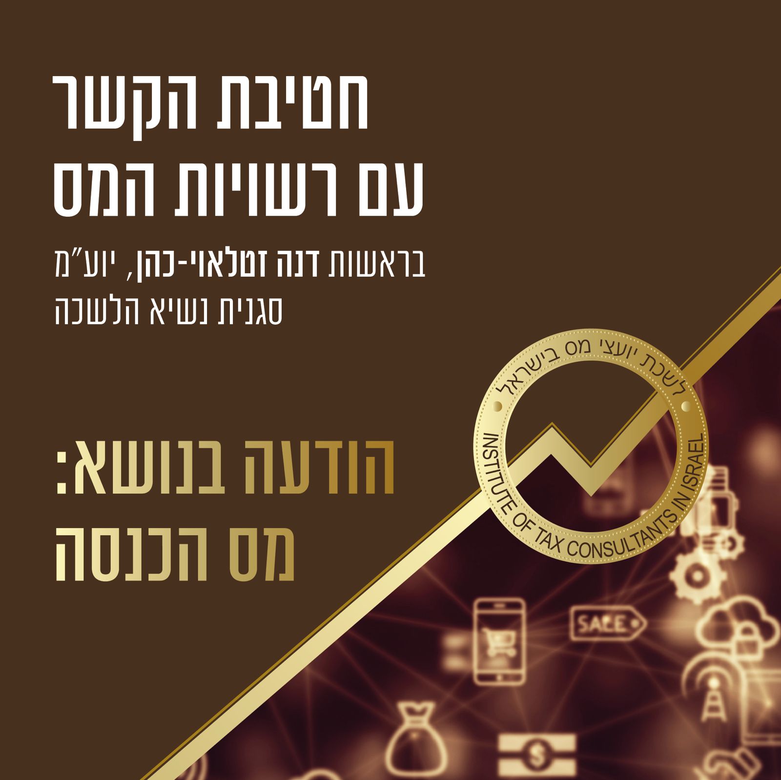 בברכת כבוד, דנה זטלאוי-כהן, יועצת מס סגנית נשיא לשכת יועצי המס ראש חטיבת הקשר עם רשויות המס |