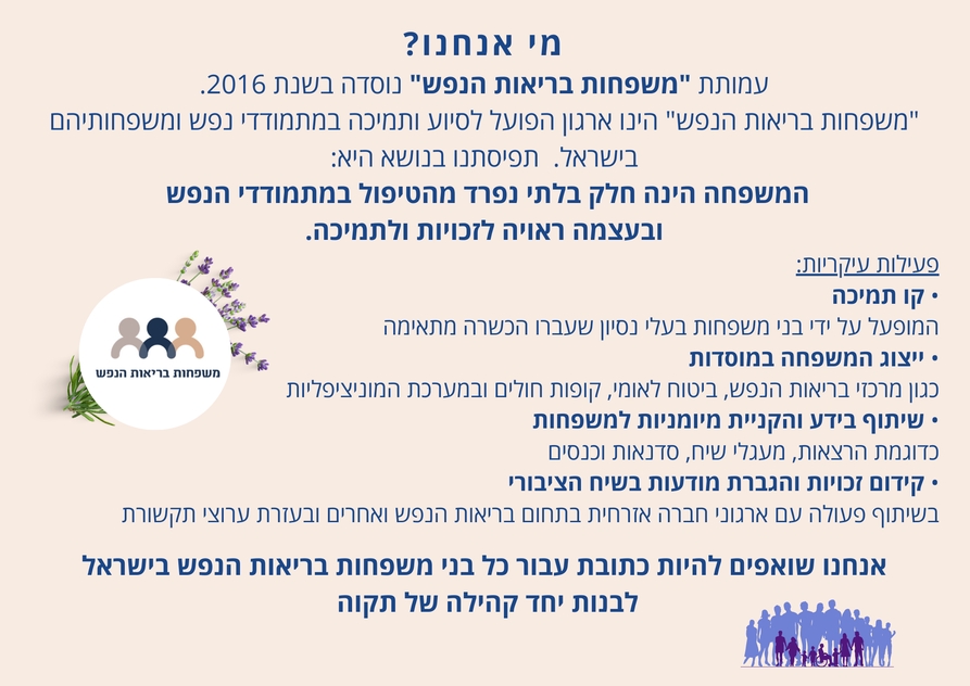 | איתכם לאורך כל הדרך ליצירת קשר עם 'משפחות בריאות הנפש' |