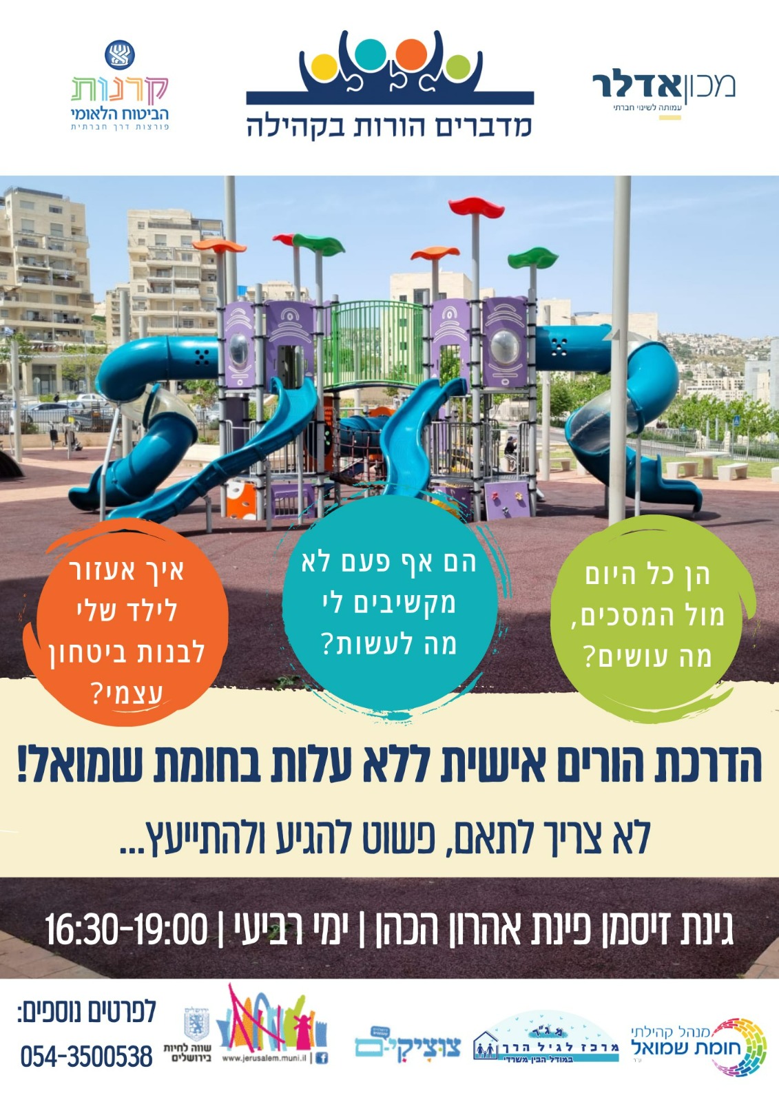 | יש לכם שאלות בנושאי הורות ? רוצים להתייעץ ולקבל כלים פרקטיים לבית? מוזמנים לתוכנית חדשה בחומת שמואל של מרכז הגיל הרך הדרכת הורים אישית ללא עלות . לא צריך לתאם ,פשוט להגיע ולהתייעץ . כל יום רביעי בגינת זיסמן/פינת אהרון כהן. בין השעות 16:30-19:00. לפרטים נוספים : עפרה מנהלת מרכז גיל רך חומת שמואל 050-6965565. בנוסף, אנחנו יודעות עד כמה ההורות יכולה להיות מאתגרת... בעיקר עכשיו, בזמן הקיץ והחופשות. ️ ולכן, אנחנו מזמינות אתכן להצטרף לקבוצת ההורים השקטה שלנו, שם תקבלו טיפים ורעיונות לפעילויות משפחתיות שיעזרו לצלוח את החופשה ובכלל. בנוסף, אתן מוזמנות לשלוח שאלות לטלפון 0543500538 ואת התשובות נפרסם בקבוצה.