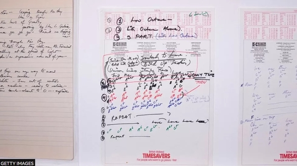 דפי המילים החתומים של Don't Stop Me Now, Somebody to Love ו We Are The Champions