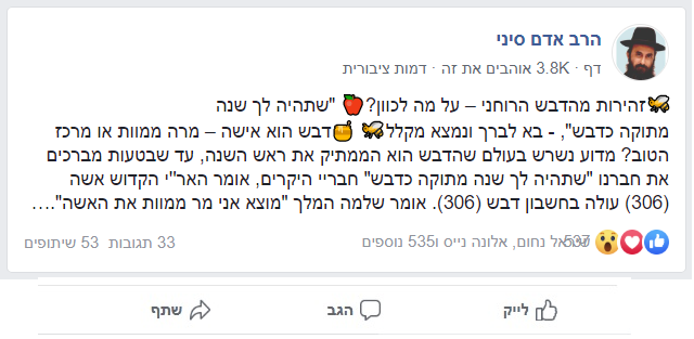 אולם ישנו תנאי חמור, והוא שצריך להמתיק את הדבש בתפוח, להמתיק את הלב באמונה. בלא אמון, האהבה הנה חיצונית, גופנית ומביאה נזק עד כדי מוות.