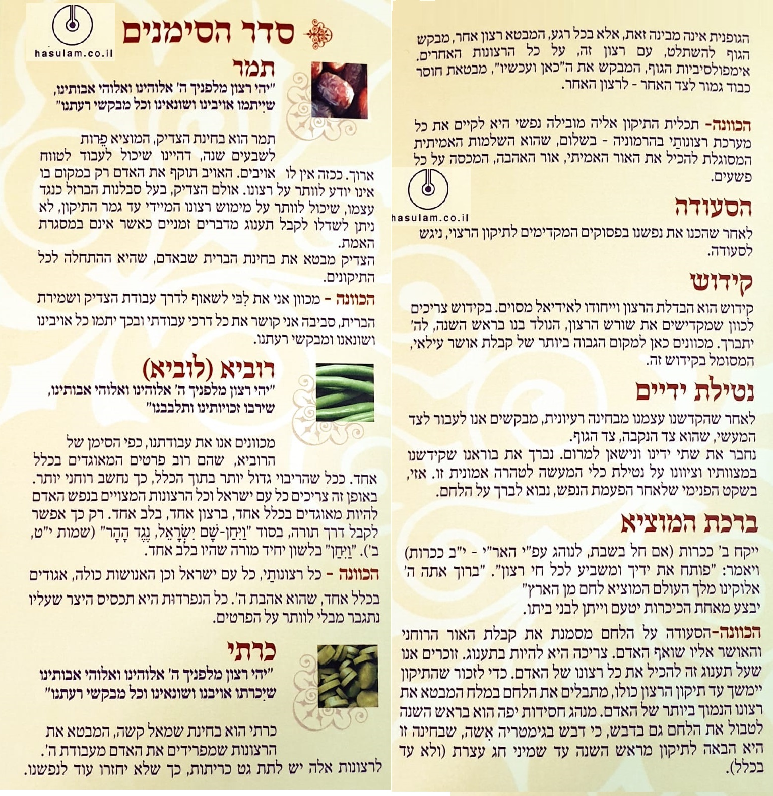 במהלך הסדר פוגשים את בחינת הצדיק (תמר)שבנו, המכוון לעניין הכלל בסוד ה״רוביא״. כדי שלא ניפול לרצונות כוזבים, כורתים מנפשנו את הרצונות השגויים בבחינת ה״כרתי״, וכדי שלא להכנס לייאוש מאותם רצונות אליהם אנו נדרשים (אך לפי שעה נבצר מאיתנו לתקנם), אנו לומדים לייצר קדימות וסדר בעבודה ומשאירים את העבודה בבחינת ה״סילקא״ לזמן ראוי יותר. ב״קרא״ מכוונים שישנם רצונות שלמרות שהיו בבחינת זדונות, אנו מקבלים על עצמנו להפכם לזכויות.