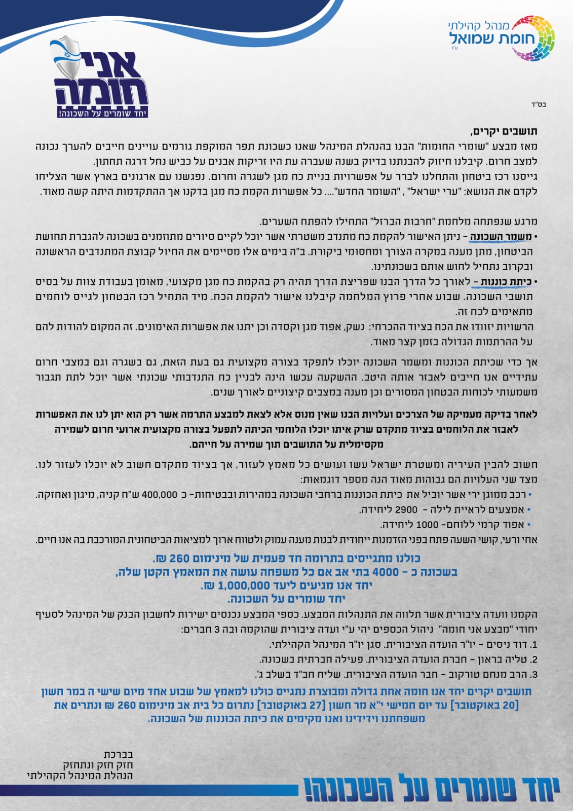 | תושבים יקרים מבצע אני חומה יוצא לדרך !!