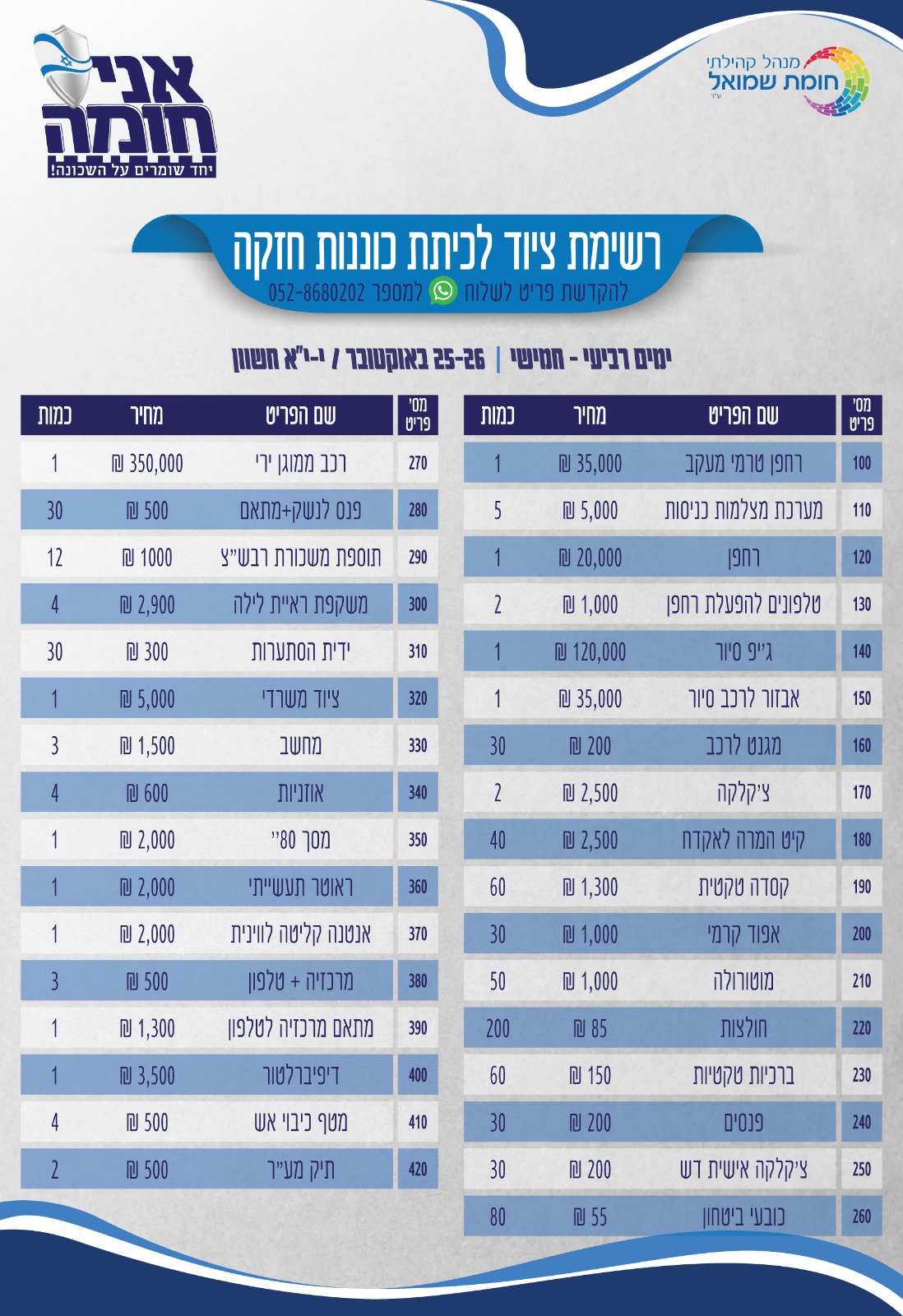 | מינהל קהילתי חומת שמואל הקים מרכז חלוקה למפוני דרום/צפון |