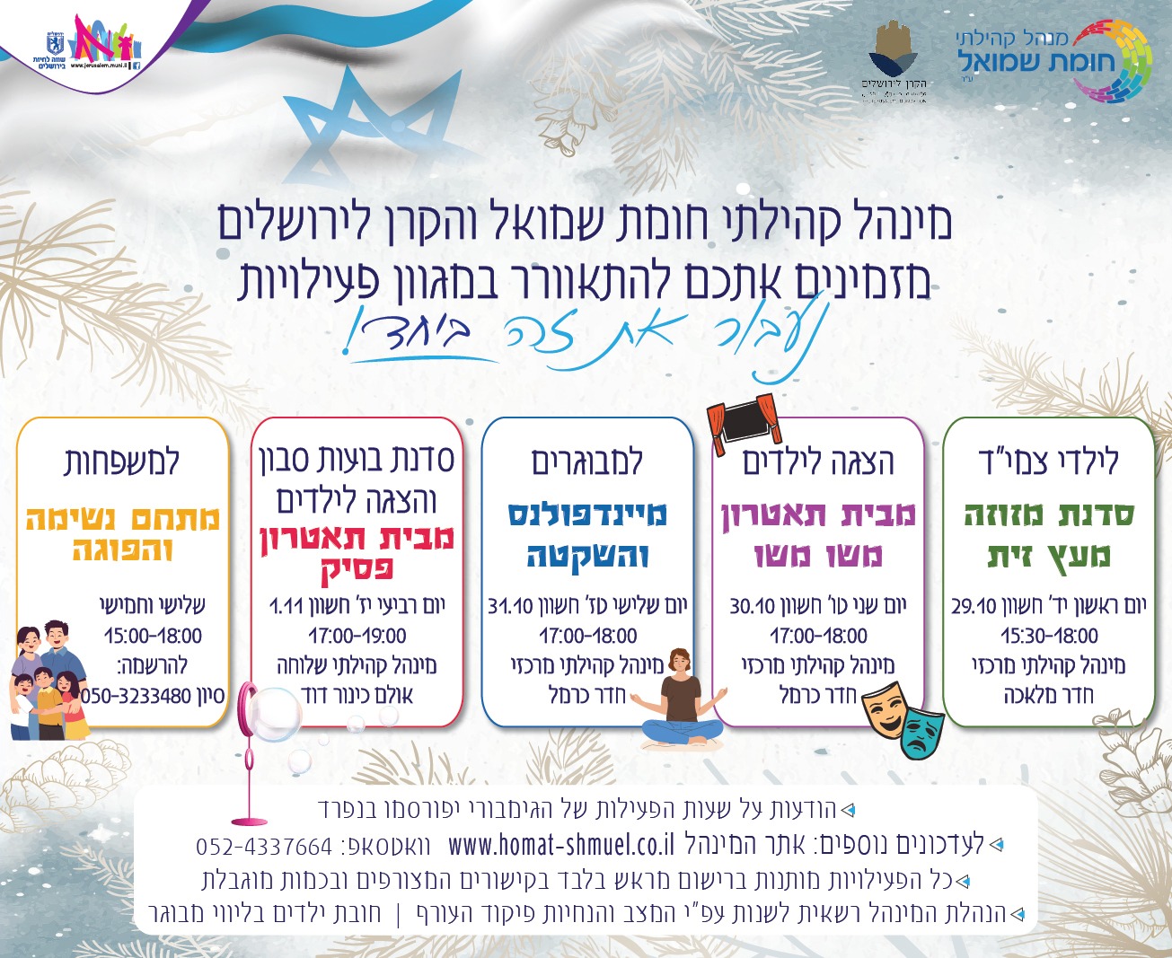 שמחים לחשוף בפניכם את לוח הפעילויות של השבוע הקרוב