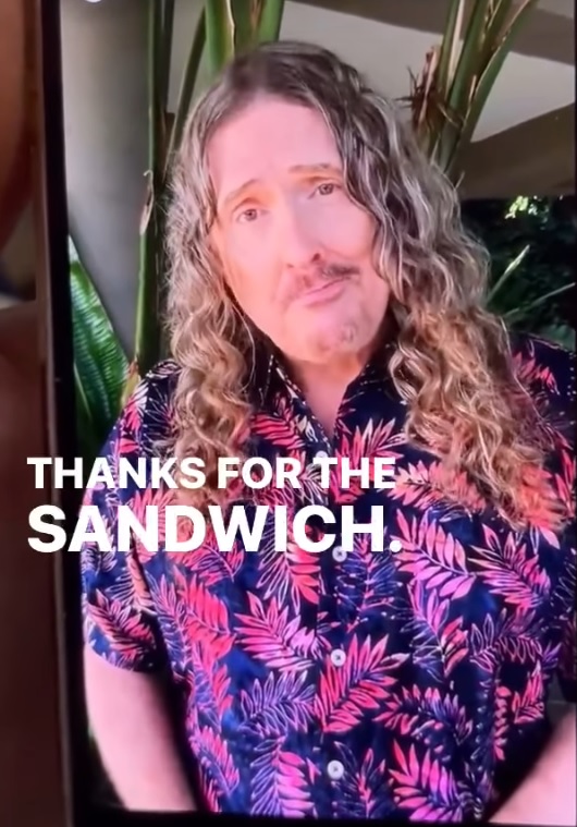 אל ינקוביץ' ברך את מעריצותיו/יו בסרט שהעלה לספוטיפיי ובו אמר "אני מבין ששירים שלי נוגנו מעל 80 מליון פעמים בספוטיפיי. אם אני עושה את החישוב נכון, זה אומר שהרווחתי 12 דולר, מחיר של סנדוויץ' במסעדה. לכן, מעומק לבי, תודה על תמיכתכן/ם; תודה על הסנדוויץ'."