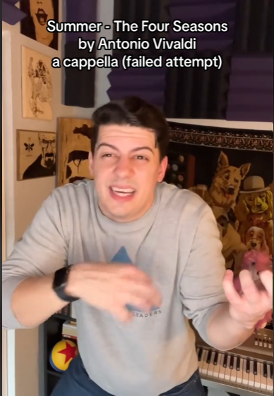 * בחור שעושה לבדו את כל התפקידים ב"קיץ", מ"ארבע העונות" של ויואלדי, בקליפ הזה. פעם היינו משקיעים אנרגיה בלמשוך בנות. החבר'ה של היום עובדים קשה כדי להביא לייקים.