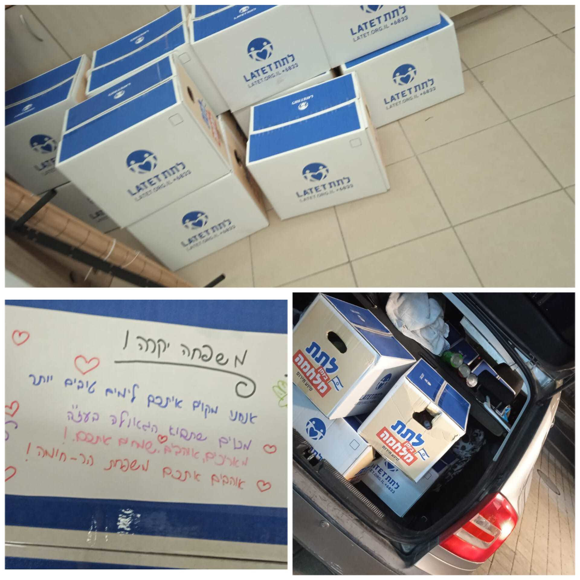 | בתרומה גדולה מארגון 'לתת' ובעזרה של תושבי הר חומה הצלחנו לחלק ארגזי מזון למשפחות צרפתיות של מגויסיים, נקווה לימים טובים יותר! Dans un élan de générosité en collaboration avec l'association Latet et grâce au dévouement d' habitants de notre quartier,le minhal kehilati d'har homa a pu distribuer à des familles francophones de réservistes des colis alimentaires.En espérant des jours meilleurs très bientôt. |