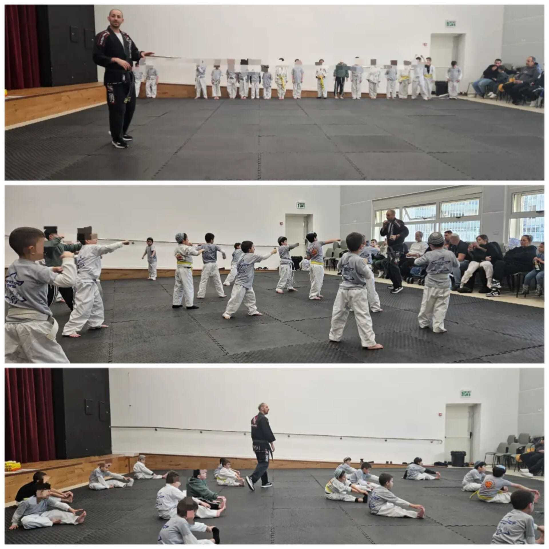 | השבוע התקיימו אימונים פתוחים במסגרת החוג שילוב לחימה ישראלי. המשפחות של המשתתפים הגיעו לצפות בילדים ולראות את התקדמותם מתחילת השנה. בסיום האימון התקיים טקס הענקת חגורות ותעודות. אלופים! |