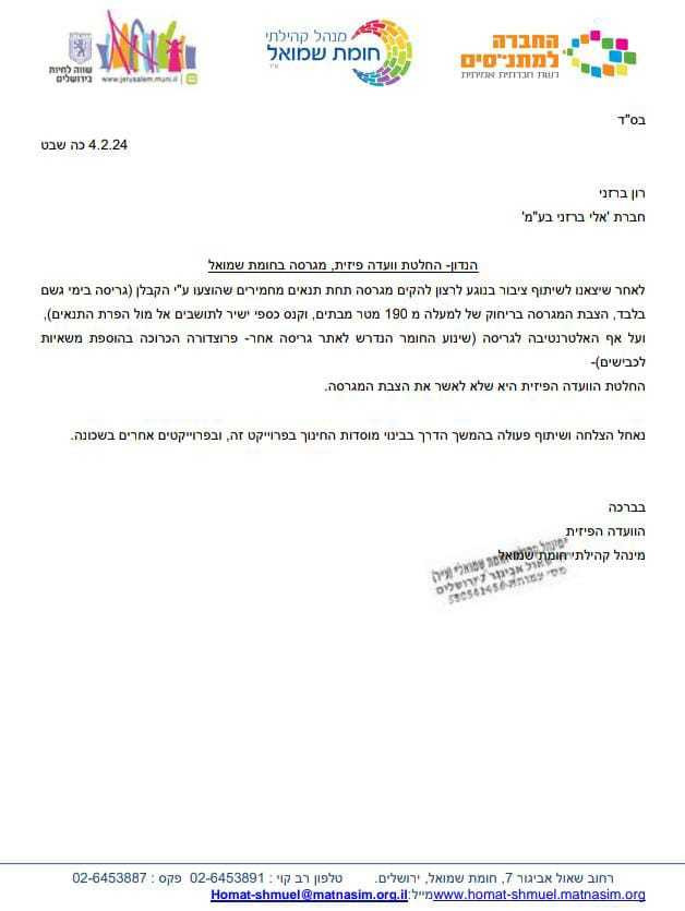 | החלטת הוועדה הפיזית לגבי הצבת המגרסה |