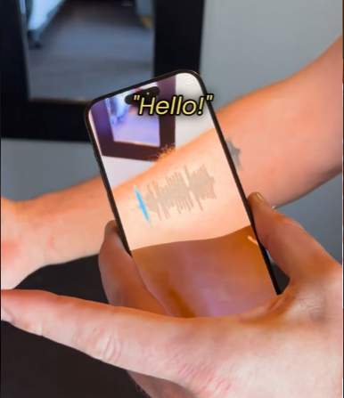 | * בחור בשם כריסטופר ויין קעקע על פנים הזרוע שלו קעקוע שמייצג גל קול. כשמצלמת הטלפון שלו מזהה את הקעקוע היא משמיעה את קולו של סבא שלו בהקלטה שגל הקול הזה מייצג. הנה תראו כאן. |