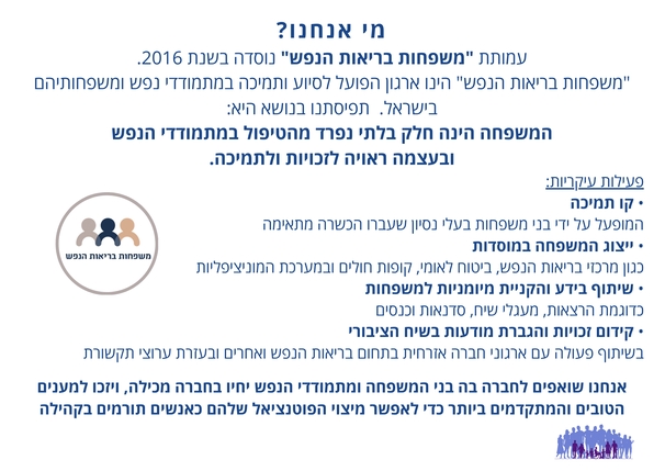 | דרכים נוספות ליצירת קשר עם 'משפחות בריאות הנפש' |