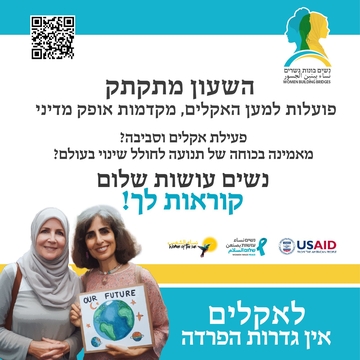 | משבר האקלים מחריף ואיתו גם הסכסוך המדמם בארצנו. מה הקשר ביניהם? כיצד פעילות למען האקלים יכולה לתמוך ביצירת אופק מדיני אחר, ואיך פתרון מדיני יכול לתמוך בהתמודדות עם משבר האקלים באזורנו למען חיים לכולנו? והאם יש שותפות לכך גם בצד הפלסטיני? הצטרפו אלינו לתוכנית הכשרה ייחודית המיועדת לפעילות סביבה ישראליות ופלסטיניות! | | | | |