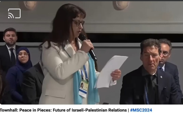 | "עכשיו, יותר מאי פעם, אנחנו מאמינות שהסכם מדיני לפתרון הסכסוך הוא הדרך היחידה להביא ביטחון לישראל ולאזור כולו, ושאנחנו כנשים וכאימהות, מחויבות לפעול למען שחרור מיידי של החטופים, להפסקת אש ולסיוע במשבר ההומניטרי בעזה." כך אמרה אילת הראל, נציגת נשים עושות שלום, בפאנל ״Pieces of Peace״ שהתקיים בכנס מינכן לביטחון. אילת הדגישה את האחריות של ההנהגות האזוריות ושל הקהילה הבינלאומית לפתוח במאמצים רב לאומיים לקידום פתרון מדיני לסכסוך הישראלי-פלסטיני ולהבטיח שילוב משמעותי של נשים וארגוני חברה אזרחית בתהליך. בפאנל השתתפו גם ראש הממשלה הפלסטיני, שרי החוץ של ספרד, קנדה וירדן, וציפי לבני, לשעבר שרת החוץ של ישראל. ההזמנה של תנועת נשים עושות שלום לכנס מינכן לביטחון אינה עניין של מה בכך, והעניקה לנו הזדמנות נדירה להשמיע את קולה של החברה האזרחית בישראל בפורום מכובד זה. |