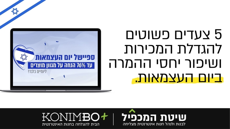 שימו לב יום העצמאות בפתח והישראליים מחכים למבצעים כחול-לבן. יש לכם הזדמנות להגדלת מכירות. במדריך זה תגלו 5 צעדים פשוטים להגדלת המכירות ושיפור יחסי ההמרה.