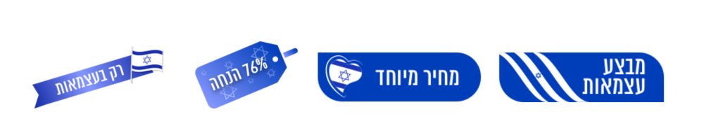 את כלל המוצרים שבמבצע עדכנו עם אייקון מושך מיוחד ליום העצמאות האייקונים צריכים להיות בצבעי הדגל.