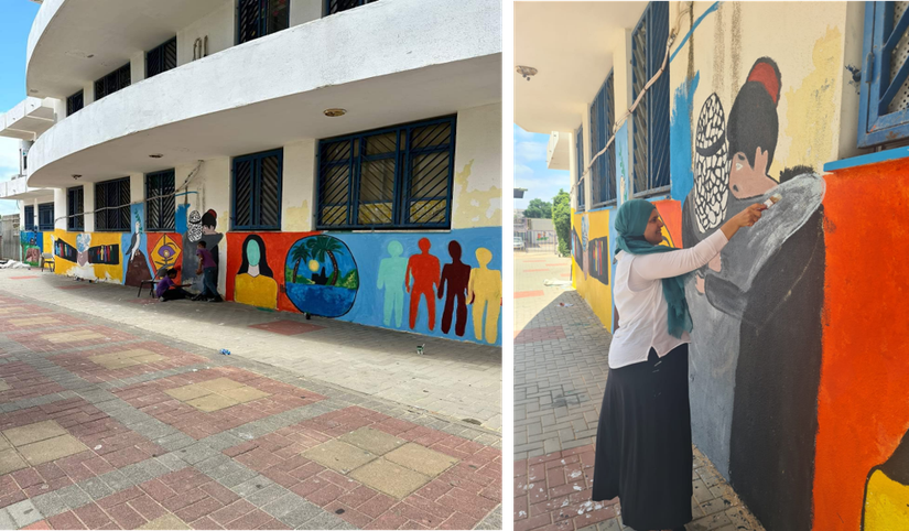 | >>> ציור משותף על כותלי בית הספר בג'סר א זרקה נשים עושות שלום חברו לתלמידי בית ספר אלמנארה בג'סר א זרקא ליצירת ציור קיר משותף בבית הספר, תחת הכותרת "שונים ושותפים". המיזם המקורי הזה נבחר במסגרת הכשרת "בונות עתיד" של נע"ש, לחיזוק ההיכרות ולבניית אמון כבר בגיל מוקדם, וכאות תודה לבית הספר שאירח בעבר ברוחב לב את המפגש של נשים עושות שלום ונשות השמש. פרויקט הציור המשותף, שהגיע לידי גמר ב – 26.6, כלל תהליך חינוכי-אומנותי מקדים, חשיבה משותפת עם הילדים ותכנון סקיצות. התוצר הסופי משתרע על 20 מ' וגובהו 1.80 מ'. נשות החינוך שאפשרו אותו הן רים מואסי, המורה לאומנות של בית הספר והאומנית כיפאיה עיאטי, חברת התנועה. במעמד סיום הפרויקט הוענקו תעודות הוקרה מטעם נשים עושות שלום להן, לתלמידים וגם לבוגרות ההכשרה "בונות שלום". |